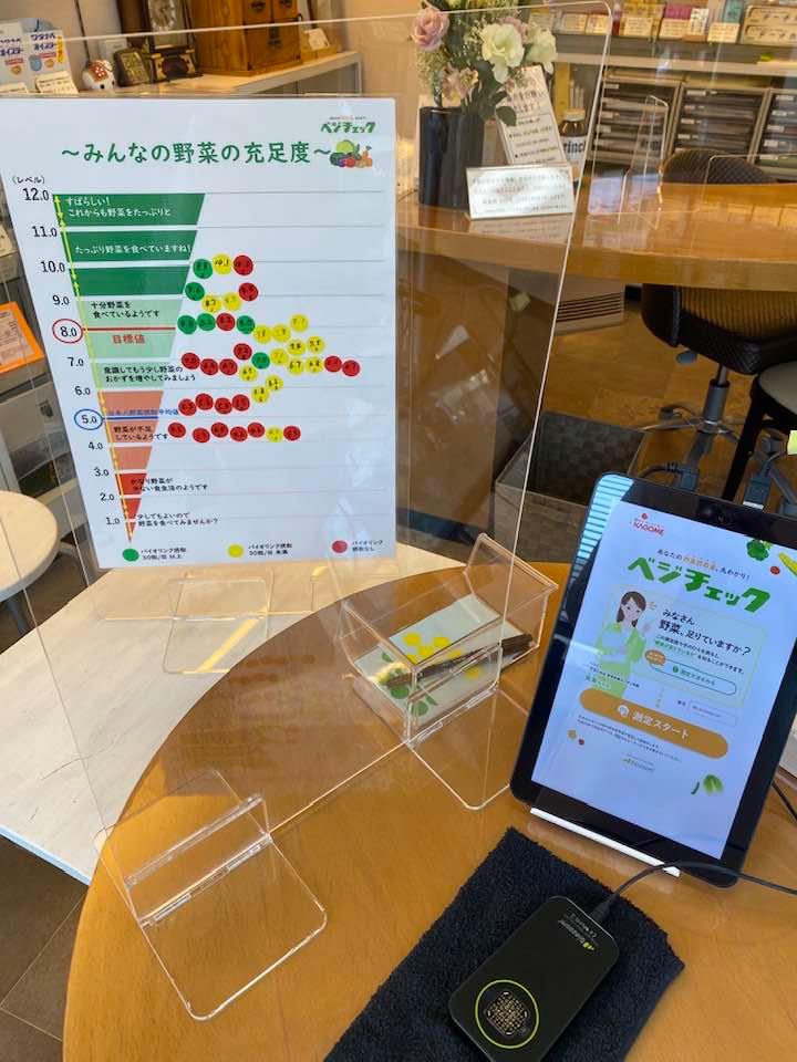 「ベジチェック」は、野菜充実度が分かるもので、βカロチンの量を測定しています。