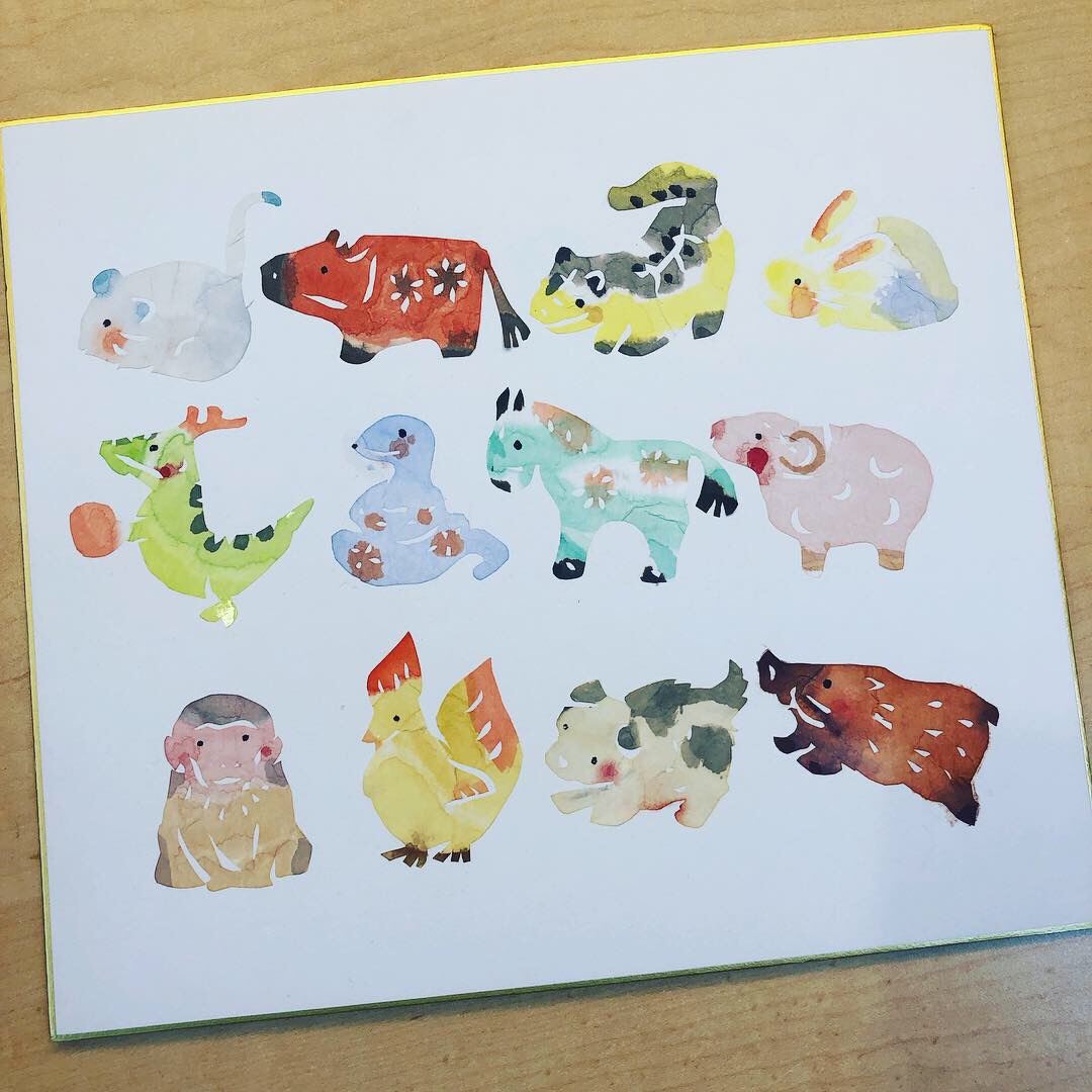 半紙に色をつけて十二支の形にカットして、貼り付けたそうですよ!