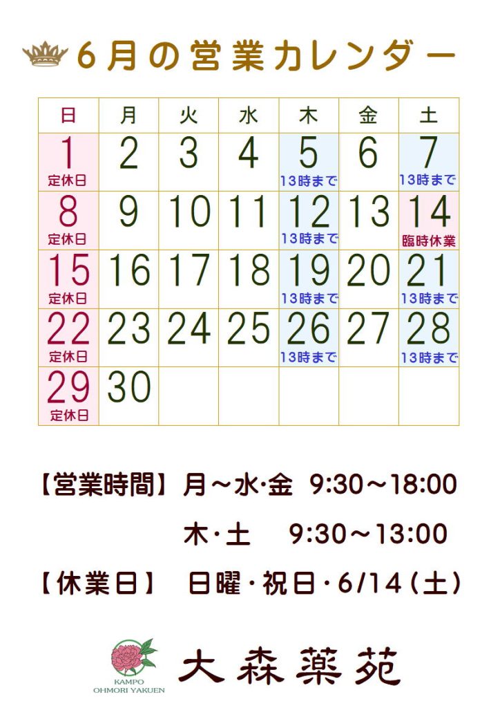 6月の営業カレンダー