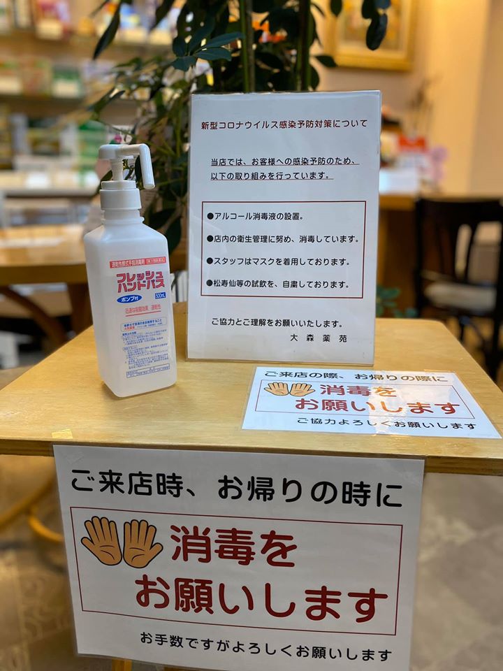 店舗入口に消毒液を設置しておりますので、ぜひご利用下さい。