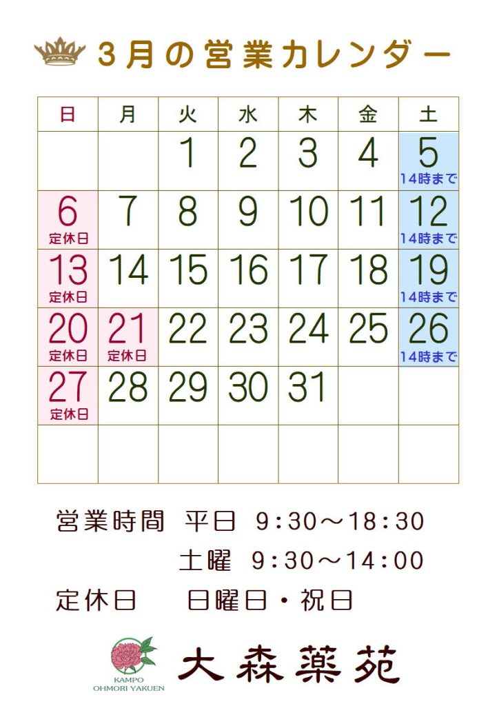 3月の営業カレンダー