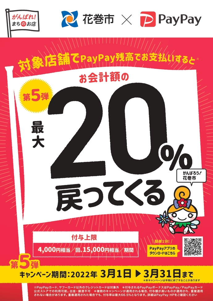 第5弾「花巻市×PayPayで最大20%戻ってくるキャンペーン」開催します!