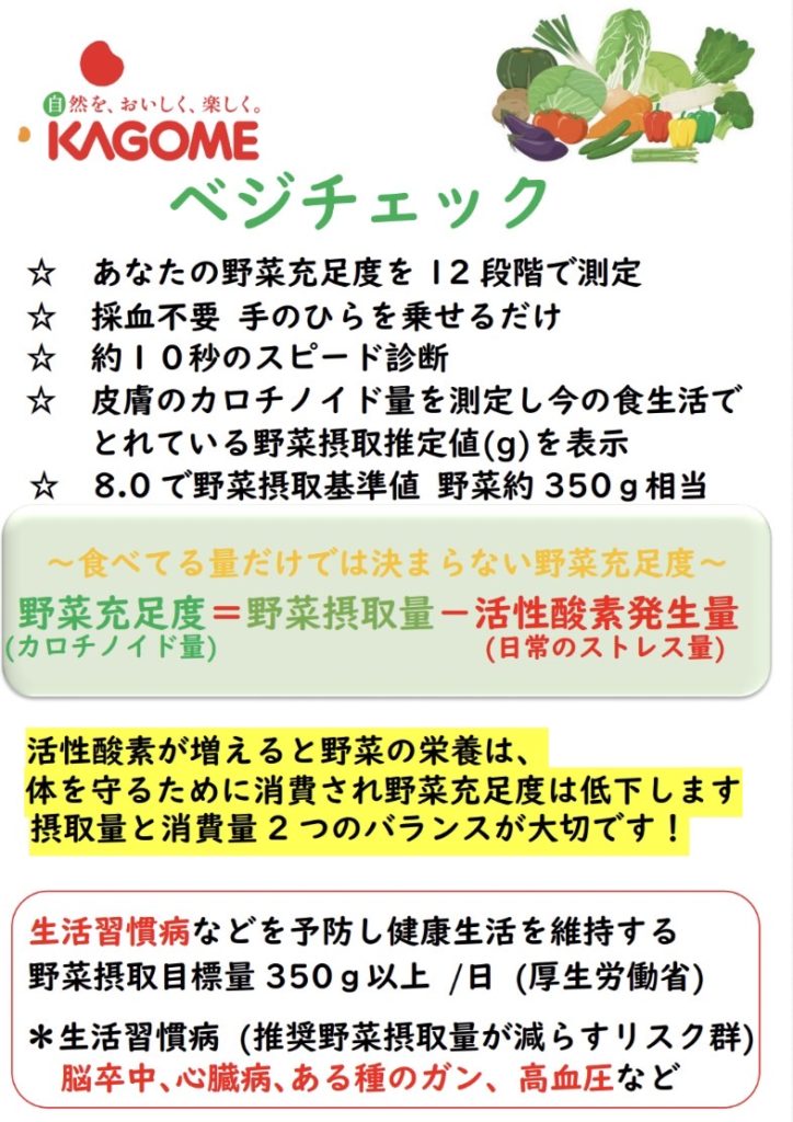 毎回大好評の「ベジチェック測定会」。開催が決定しましたので、お知らせいたします。