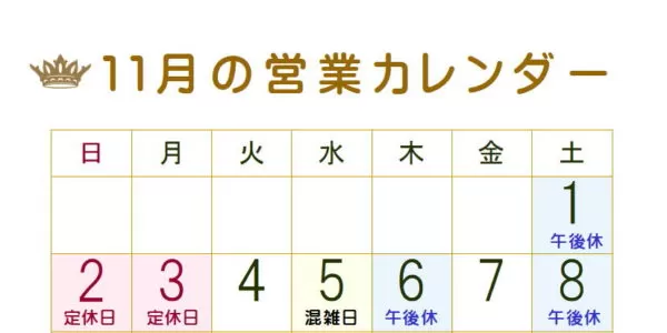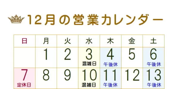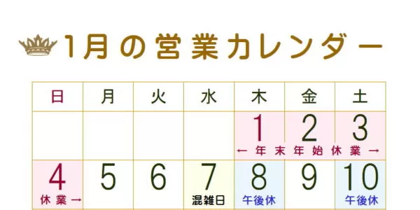 ※木曜日と土曜日が午後1時までの営業になります。