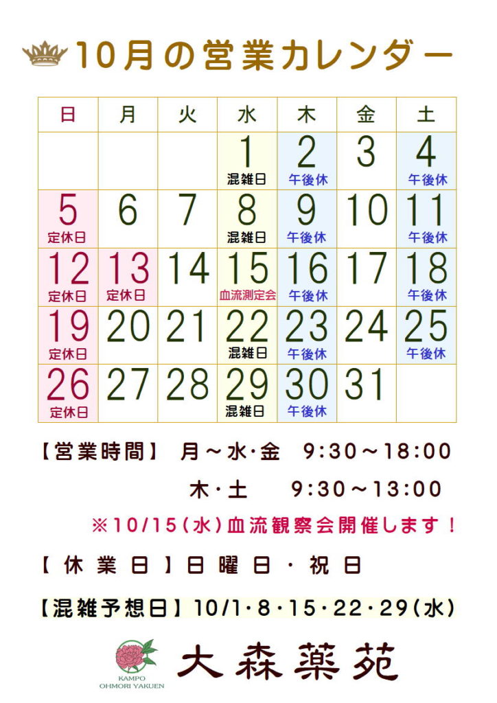 【10月の営業予定】